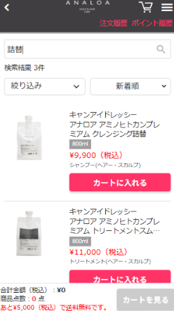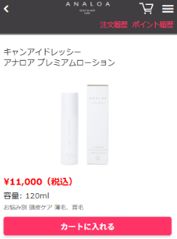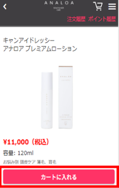 「カートに入れる」ボタンを押すと商品が追加されます。