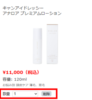 数量部分を押すと選択肢「1~20」が表示され、数量の変更ができます。
