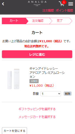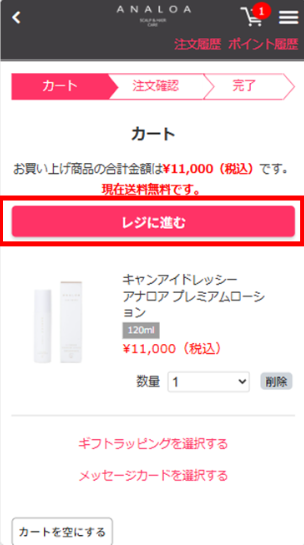 「レジに進む」ボタンを押し、注文手続きに進みます。