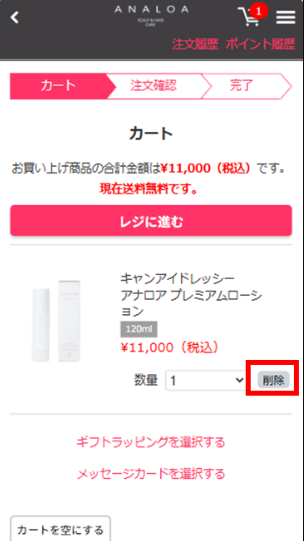 カート内の商品を削除する