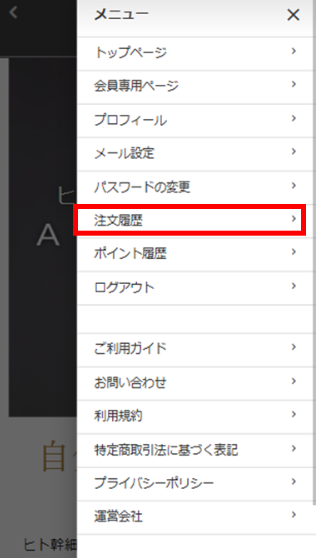 ログインしている状態で、メニューバー>注文履歴を選択します。